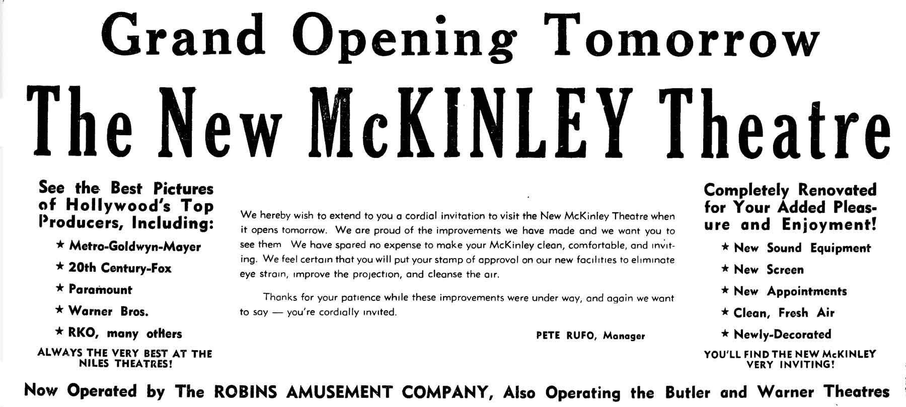 Theatre would be built, the McKinley Theatre closed in 1960.