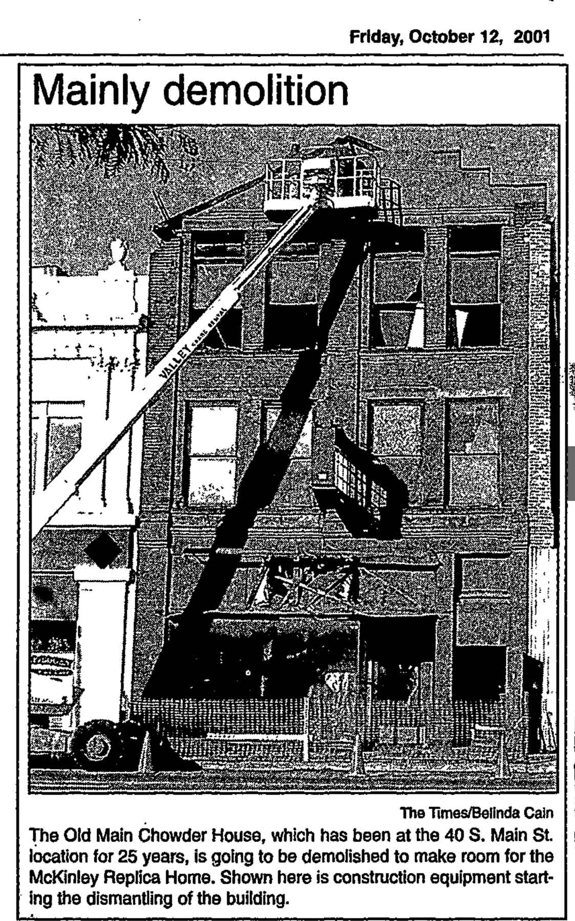 to make way for the replica of the McKinley Birthplace.